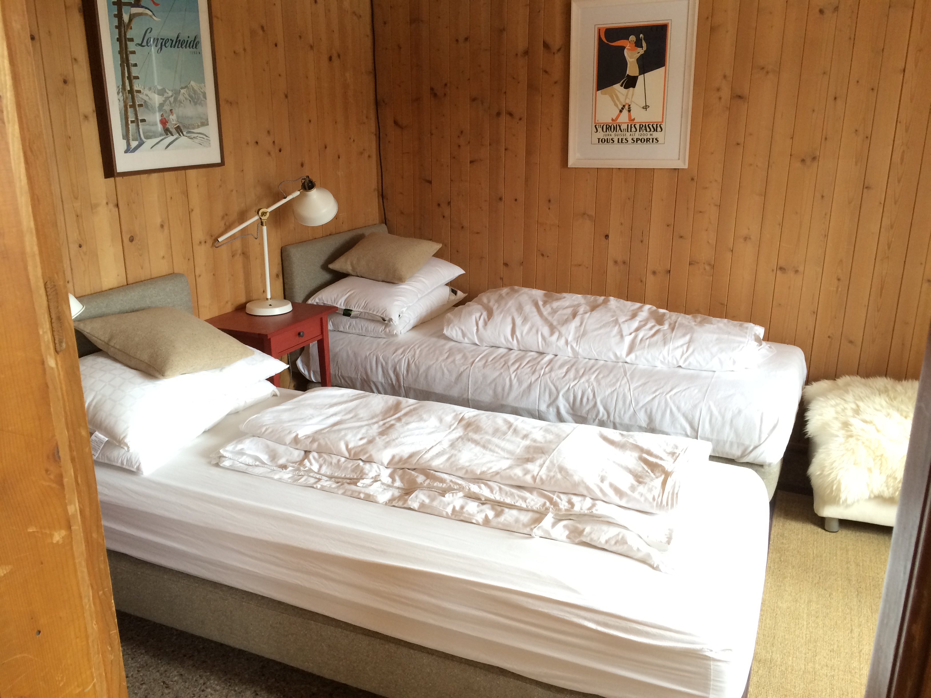 Vintage ski posters, leather chairs and antique pine cupboards complete the traditional stylish ambience within the bedrooms. Two of the four double bedrooms have the option to change to twins. One wooden cot and two travel cots available.