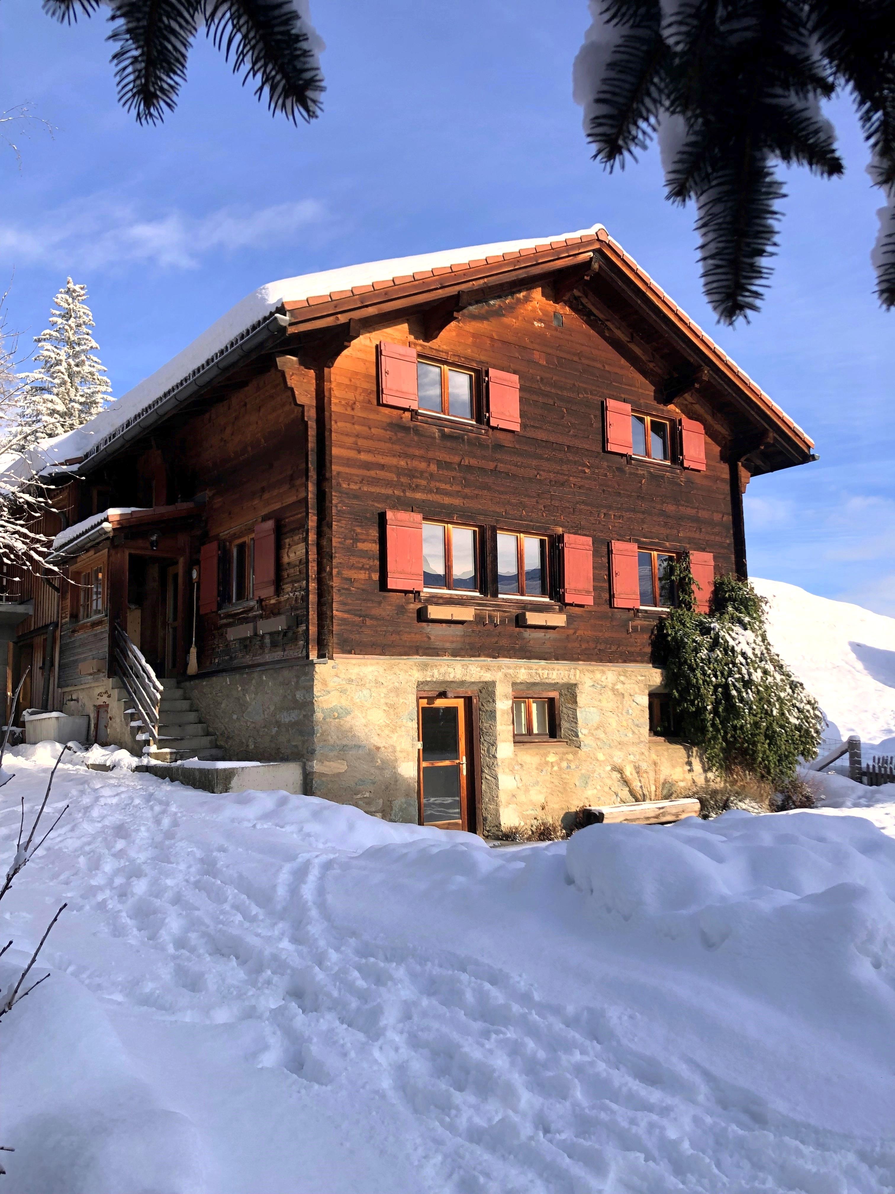 The kitchen is simple and well equipped to cater for any number of guests. Its wood burner/stove adds alpine charm and authenticity for those mid-winter ‘stove-prepared’ hot chocolates. Electric hobs and oven are available for conventional catering.